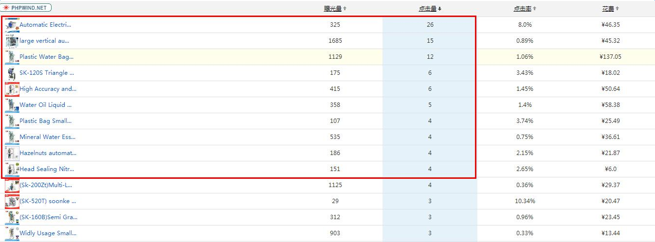 每月都要關(guān)注一下花費最高、點擊最高的前十款產(chǎn)品。